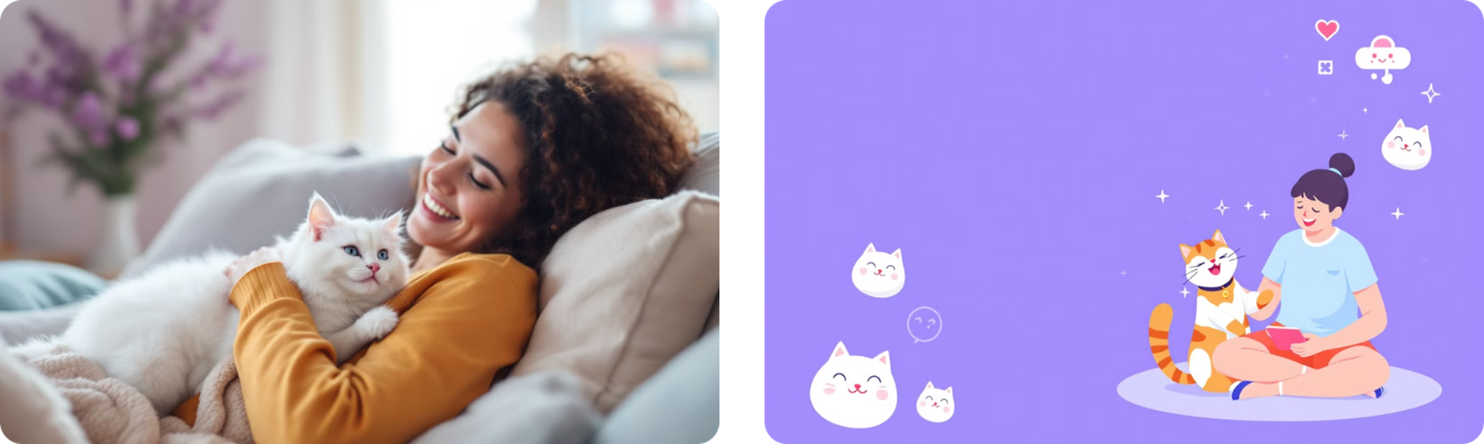 사랑을 주고받는 시간이 충만한 생활을 원한다면 애정 많은 고양이와 잘 맞습니다. 서로의 사랑을 듬뿍 받을 수 있을 거예요! 😻